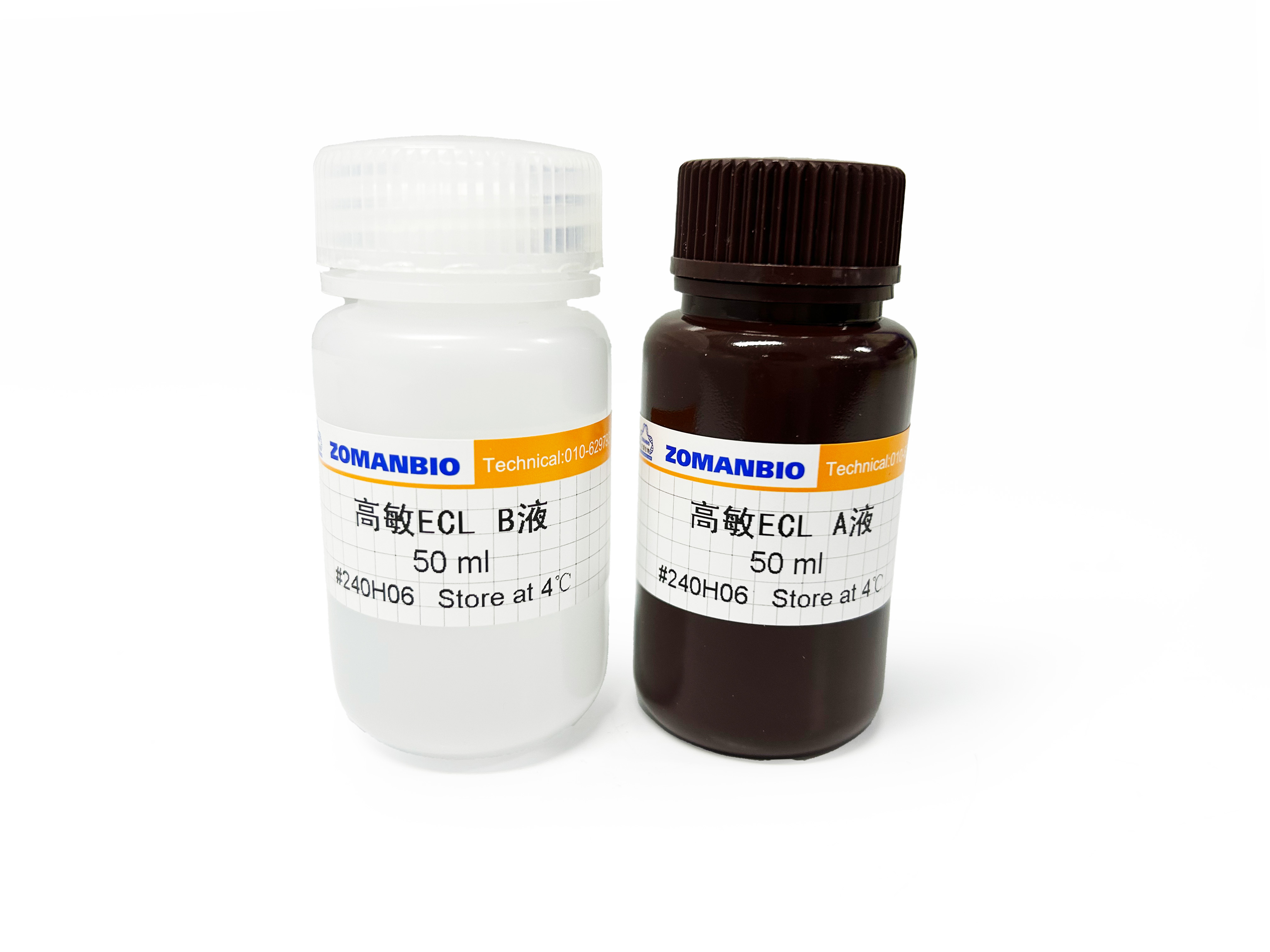 ECL(enhanced chemiluminescence)發(fā)光液是基于魯米諾(Luminol)的新一代增強(qiáng)型化學(xué)發(fā)光底物試劑,即辣根過氧化物酶(HRP)化學(xué)發(fā)光底物液,是目前WB檢測中最常用高靈敏的顯色試劑。