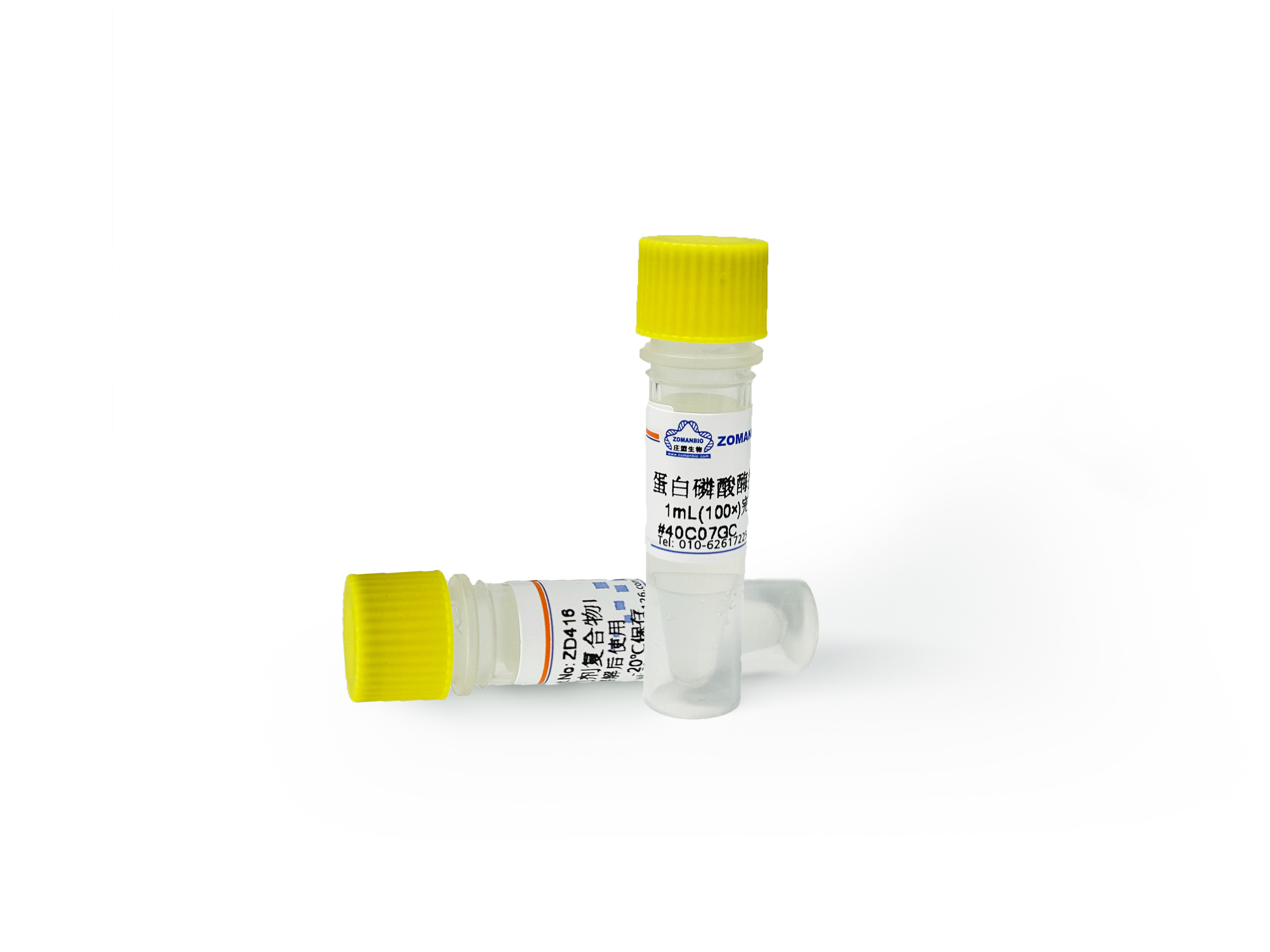 本公司研制的蛋白磷酸酶抑制劑復(fù)合物以國際上主流配方改進(jìn)而成,主要成份為5種獨(dú)立的蛋白磷酸酶抑制劑(釩酸鈉、氟化鈉、鉬酸鈉、酒石酸鈉、咪唑),每一種抑制劑可特異性抑制某一種或幾種蛋白磷酸酶活性。該復(fù)合物優(yōu)化的組成使其可以強(qiáng)烈抑制幾乎所有重要的蛋白磷酸酶活性,包括蛋白絲/蘇氨酸磷酸酶、蛋白酪氨酸磷酸酶、堿性磷酸酶、酸性磷酸酶以及ATP酶等。該復(fù)合物為100倍濃縮溶液,可直接加入任何組織類型和細(xì)胞的裂解產(chǎn)物中,均能有效抑制磷酸化蛋白質(zhì)的去磷酸化,從而維護(hù)蛋白質(zhì)的磷酸化狀態(tài)。適用于Western blot和免疫共沉淀檢測磷酸化蛋白質(zhì)、蛋白激酶活性測定等。